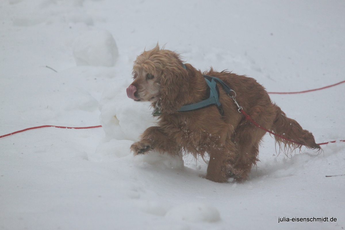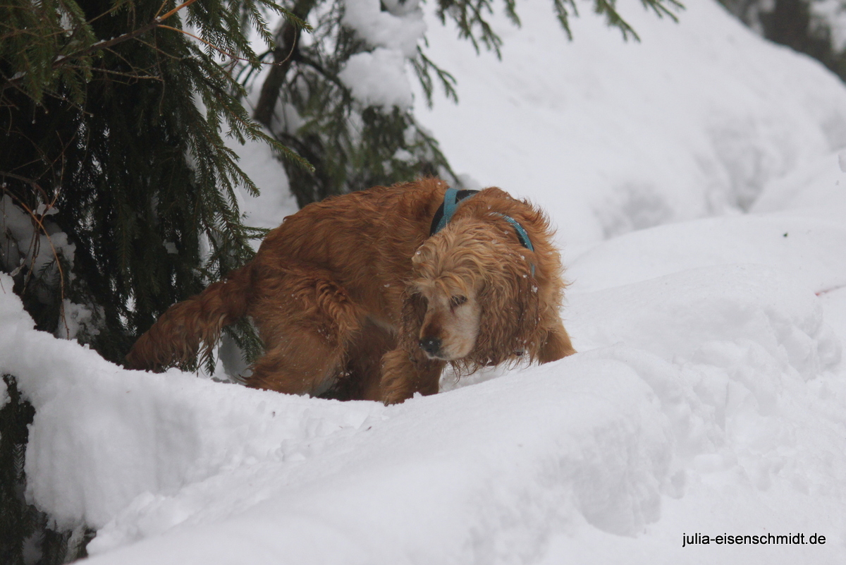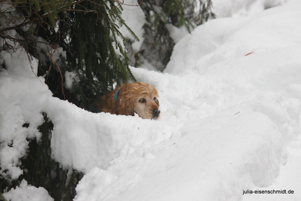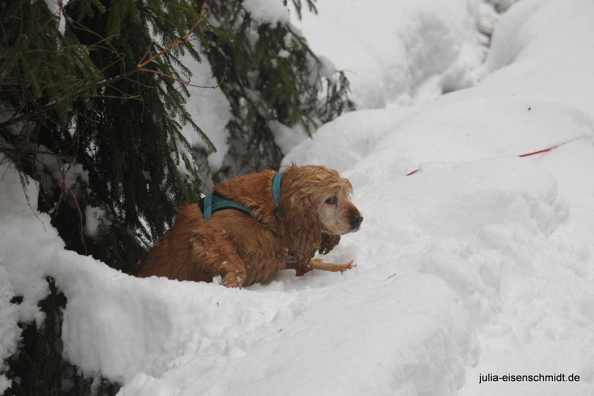Der Samstag stand im Zeichen des Schnees. Ab in den Harz, weil da ganz bestimmt noch ganz viel davon liegt. Und so war es auch. Aber für Molly ganz schön heimtückisch – erst macht es den Anschein, dass man da toll drüber laufen kann und dann steht man bis zum Bauch drin und muss ganz schön kämpfen, um wieder raus zu kommen. Das hat sie aber nicht davon abgehalten, immer wieder ihre eigenen Wege zu gehen 🙂