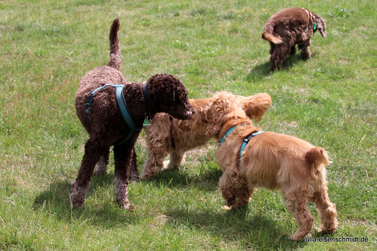 Gestartet mit einem leckeren Frühstück für die Zweibeiner ging es dann los zur „Alten Bult“ – einer riesigen Auslauffläche, auf der auch während der Brut- und Setzzeit Hunde ohne Leine geduldet werden. Danach dann weiter quer durch die Eilenriede zum Biergarten Lister Turm. Kurzes Päuschen und eine kleine Erfrischung, bevor es dann in Meyers Garten im Erlebniszoo Hannover ein leckeres Abendessen gab.