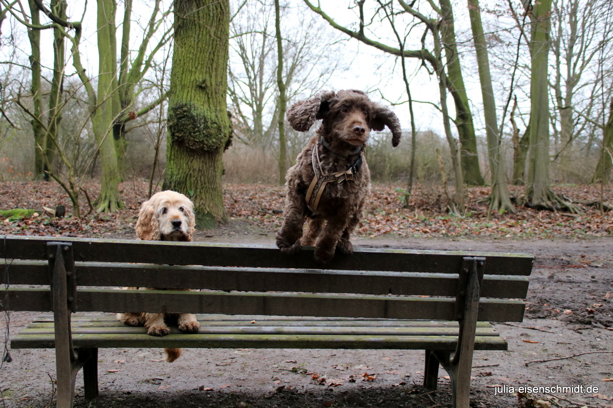 Aber wenn man nochmal in Hannover ist, muss sich auch das Trio infernale aka „CockerOnTour“ nochmal treffen 🙂 Bankbild, baden, klettern und zum Abschluss ein Wettrennen 🙂