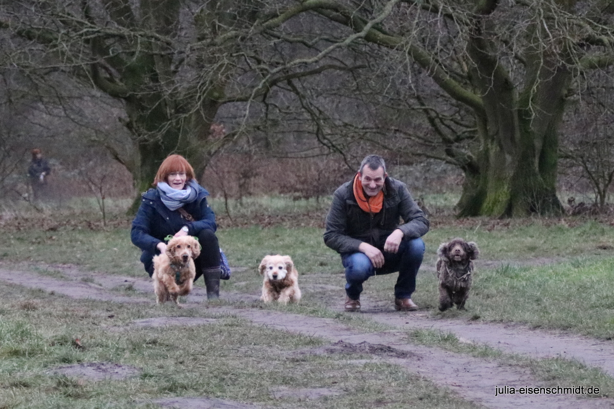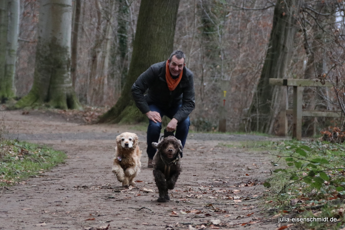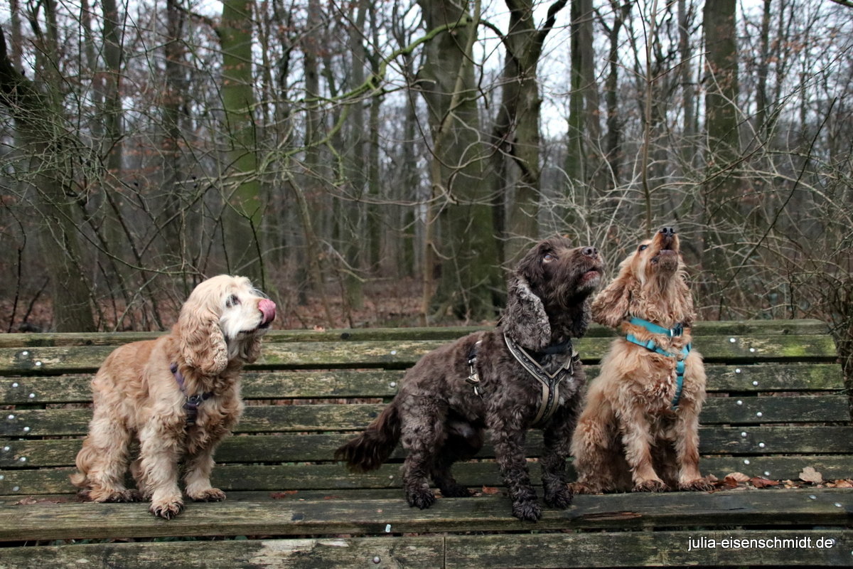 Aber wenn man nochmal in Hannover ist, muss sich auch das Trio infernale aka „CockerOnTour“ nochmal treffen 🙂 Bankbild, baden, klettern und zum Abschluss ein Wettrennen 🙂